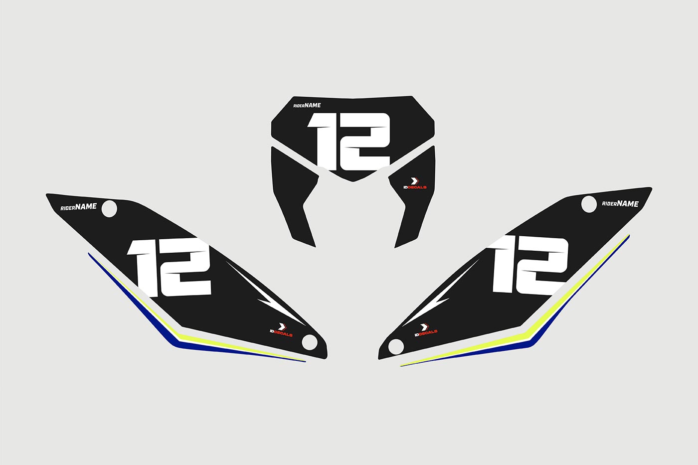 Full kit includes: Rad scoops, side number plates, airbox, rear fender, front fender, front number plate, fork guards and swingarms (Contents may vary dependent on selected model)
